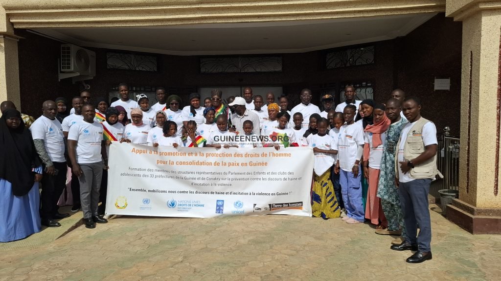 Lutter contre les discours de haine et les actes d’incitation à la violence au sein des communautés en vue de favoriser la cohésion sociale, de renforcer l’espace civique et les mécanismes indépendants de protection des droits de l’homme et contribuer au renforcement de la chaine pénale par la promotion et une meilleure prise en compte des droits de l’homme pour mieux garantir l’accès à la justice et lutter contre l’impunité. C’est dans ce cadre que Terre des hommes Guinée, en collaboration avec l’Unicef, a organise une session de formation des membres des structures représentatives du parlement des enfants (114) et des clubs des adolescents (71) sur la prévention contre les discours de haine et ou d’incitation à la violence à Conakry, Kankan, Mamou, Kindia et N’zérékoré regroupant toutes les préfectures de la Guinée.Â