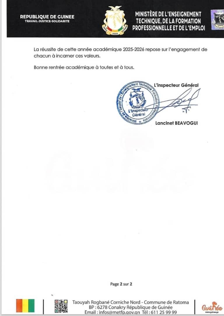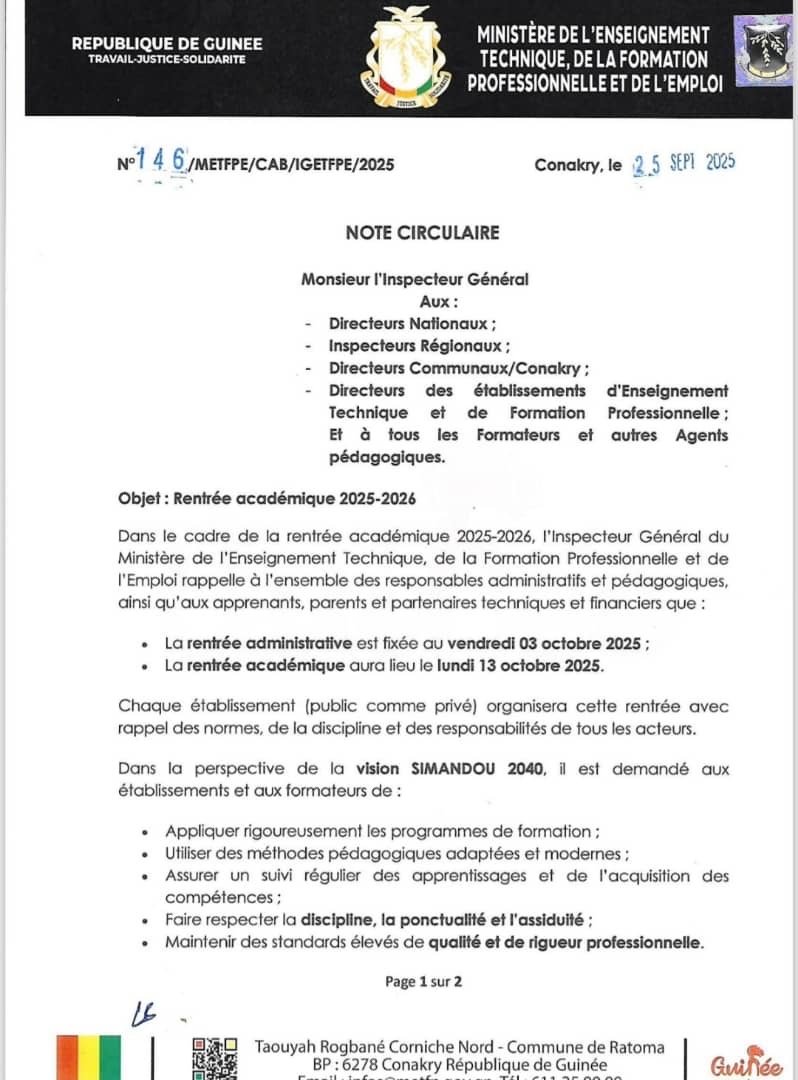 𝐒𝐞𝐫𝐯𝐢𝐜𝐞 𝐂𝐨𝐦𝐦𝐮𝐧𝐢𝐜𝐚𝐭𝐢𝐨𝐧 𝐞𝐭 𝐑𝐞𝐥𝐚𝐭𝐢𝐨𝐧𝐬 𝐏𝐮𝐛𝐥𝐢𝐪𝐮𝐞𝐬. L’article 𝐄𝐄𝐓𝐅𝐏- Voici la note circulaire relative à la rentrée académique 2025-2026… est apparu en premier sur Mediaguinee.com. Lire l’article original ici.