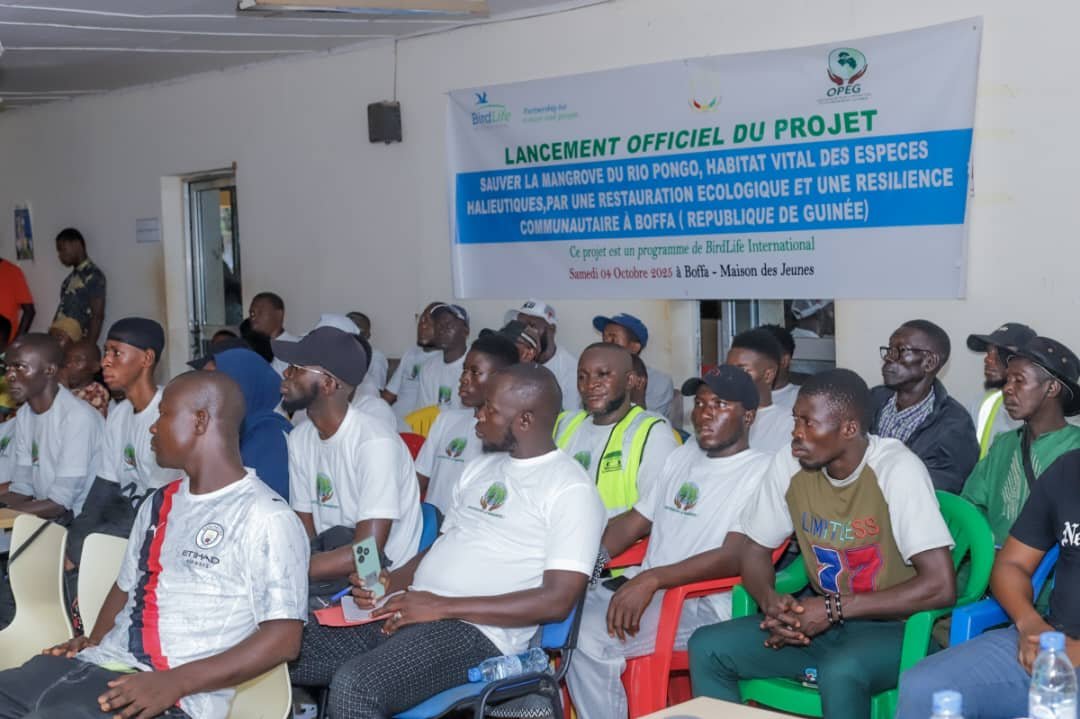 L’Organisation pour la Protection de l’Environnement Guinéen (OPEG) a officiellement lancé, ce samedi 4 octobre 2025 à Boffa, un projet ambitieux intitulé : « Sauver la mangrove du Rio Pongo, habitat vital des espèces halieutiques, par une restauration écologique et une résilience communautaire à Boffa ». Financé par une subvention de Rio Tinto dans le cadre du programme de BirdLife International, ce projet vise à restaurer l’écosystème crucial de la mangrove et à renforcer l’autonomie des communautés riveraines.