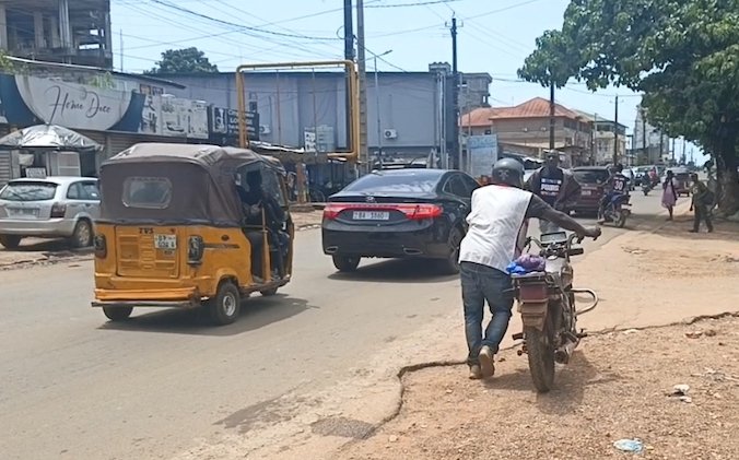 Après avoir poussé sa moto sur une longue distance, Amara Diallo, un conducteur rencontré à Kaporo, raconte son calvaire :